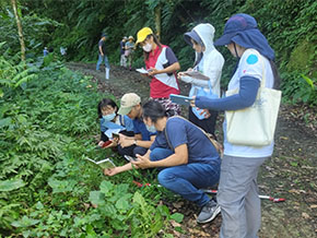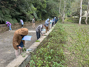 利用樣區植物調查的訓練方式熟悉地被的植物相,了解區域內的優勢物種及主要群落組成及同種植物不同生長階段的樣態。
